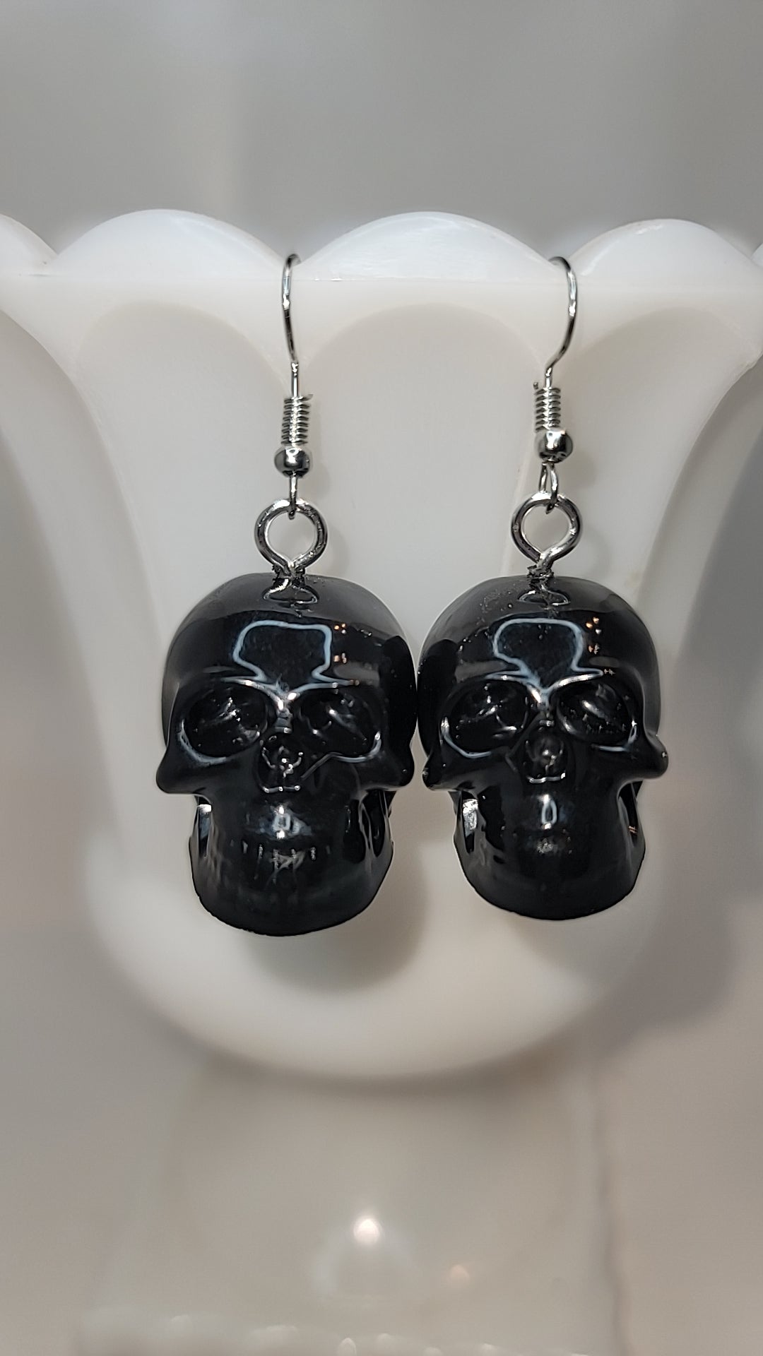 - Unleash your dark elegance. These ethereal black resin skull earrings are a tribute to timeless gothic beauty. Each skull is intricately detailed, capturing a sense of both the macabre and the mystical. Perfect for anyone who finds beauty in the shadows and wants to carry a piece of that mystery with them